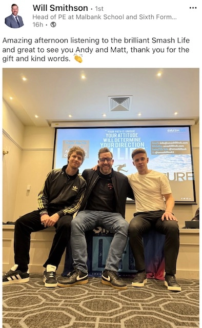 “Andy and Matt give so much to those they work with, they really are an inspiration to so many. Being able to relate to the young people they mentor through their shared life experiences gives the young people someone they can connect with openly. I would highly recommend Smash Life.”